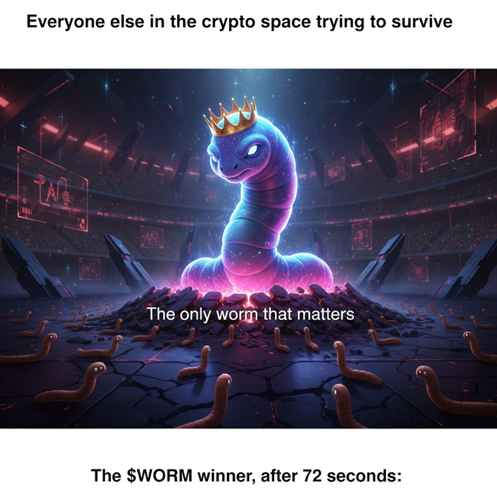 THE STRATEGY: To gamify DeFi by tapping into the "just one more round" psychology. By branding the "Crowned Worm" as the ultimate status symbol and highlighting real-time rewards, we shifted the narrative from "memecoin" to "skill-based economy." We didn't just launch a token; we engineered a digital sport.