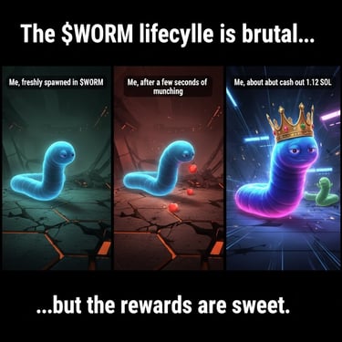 $WORM is not just a ticker; it is a digital coliseum where 112 enter, but only one leaves crowned. It is a home for those tired of passive holding, offering a high-stakes arena where players fight for a ~1.12 SOL prize in intense 72-second rounds.